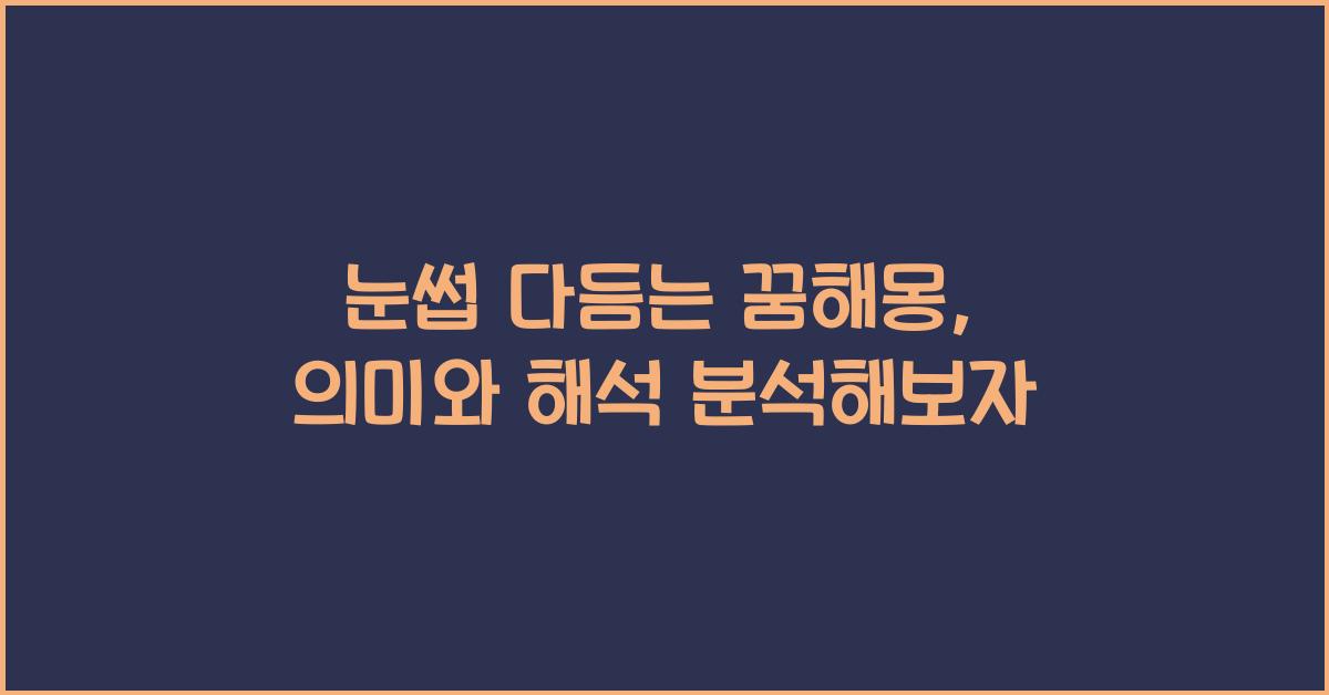 눈썹 다듬는 꿈의 기본적인 해석꿈에서 눈썹 다듬는 것을 경험하는 것은 여러 해석을 가져올 수 있습니다. 특히, 눈썹은 우리의 감정 표현과 개인적인 매력을 상징하기 때문에, 이 꿈의 해석은 화려하고 복잡할까요? 솔직히 말해, 꿈에서 눈썹을 다듬는 것은 종종 자신의 이미지나 상태를 되돌아보는 계기가 되는 경우가 많아요. 만약 꿈속에서 두껍고 거칠었던 눈썹이 정리되는 장면을 떠올려 보세요. 이 장면은 삶에서 뭔가를 정리하거나 변화하고 싶다는 강력한 욕구를 보여줍니다. 이런 꿈을 꾸는 사람은 자신을 보다 나은 방향으로 개선하고 싶고, 타인에게 더 매력적으로 보이고 싶다는 마음을 내포하고 있을 가능성이 높습니다.눈썹 다듬는 꿈 더 알아보기꿈에서의 눈썹 다듬는 행위는 또한 조정의 의미를 가질 수 있어요. 사람들은 ..